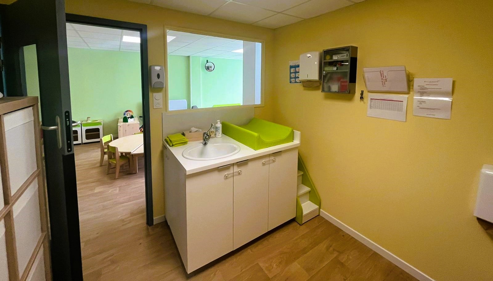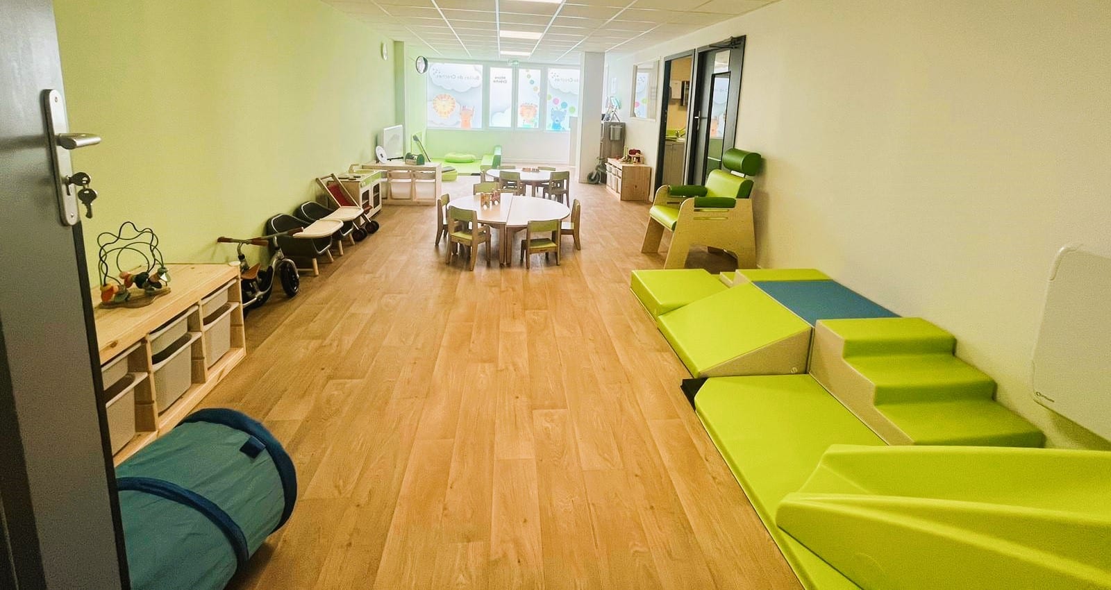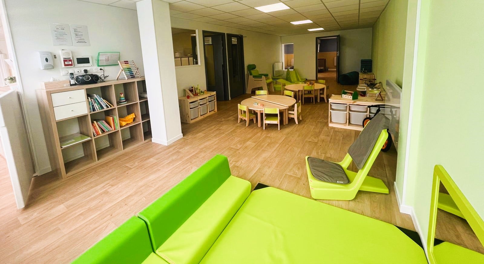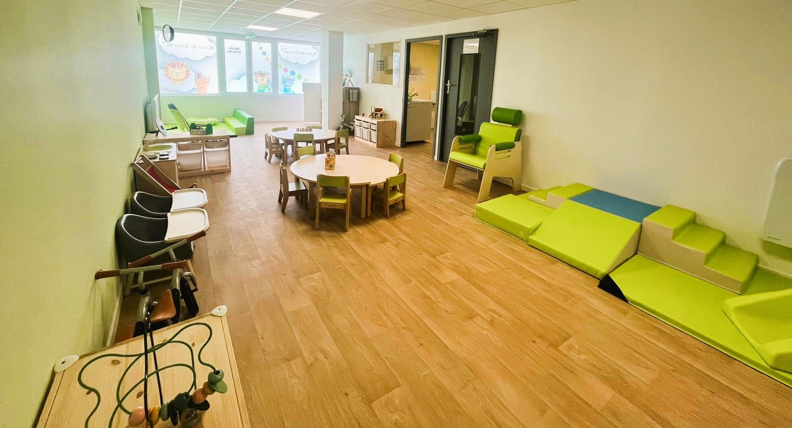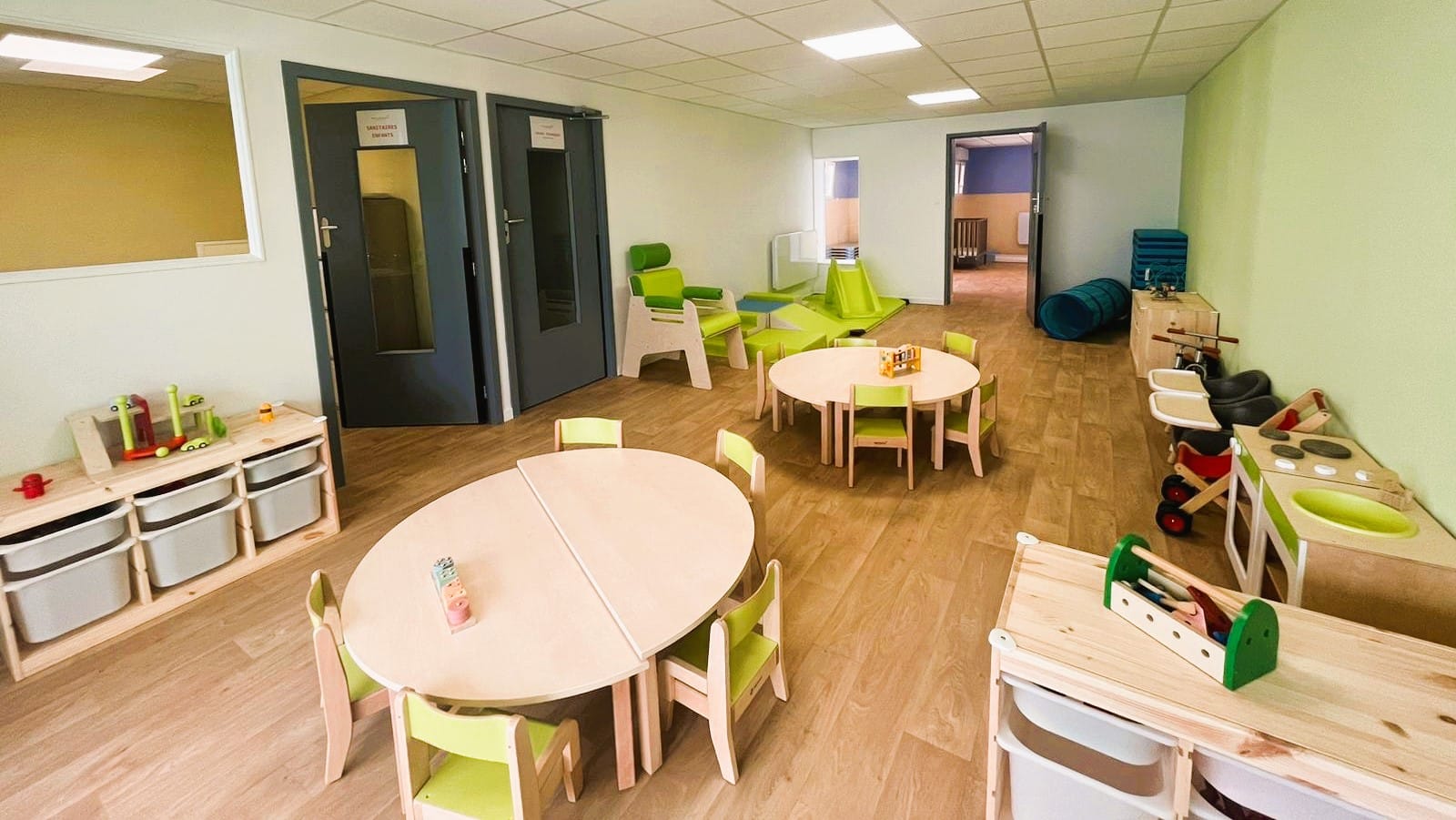 La micro-crèche de 130 m² offre une salle de vie de 58 m² et de deux salles de siestes, le tout organisé autour de lumineuses baies vitrées donnant sur un jardin dédié aux enfants de 40m². L’espace est aménagé de façon à ce que les tout-petits puissent se sentir à l’aise et se dépenser tout au long de la journée. Ainsi, des coins de jeux avec jeux de construction entre autres sont accessibles à l’enfant. Enfin, des espaces plus reposants comme des coins lecture sont proposés à l’enfant.