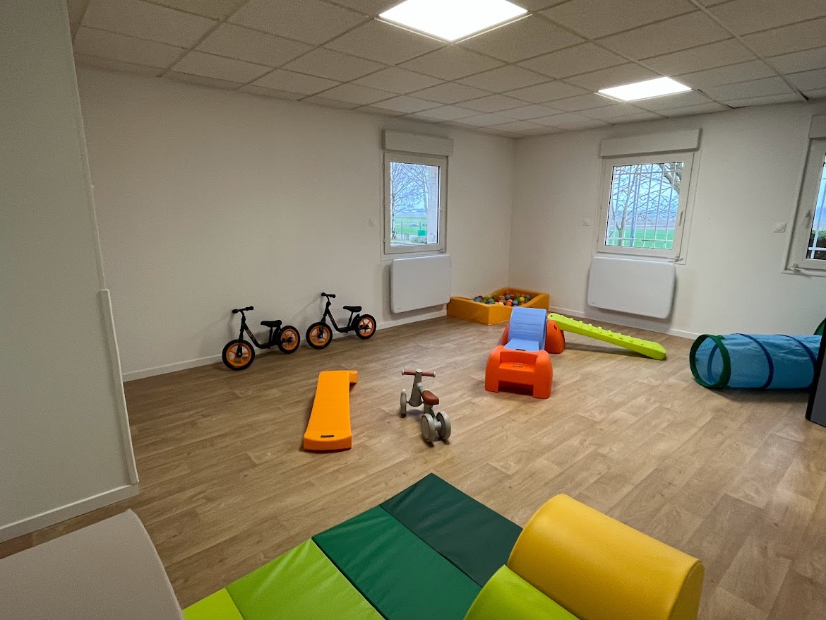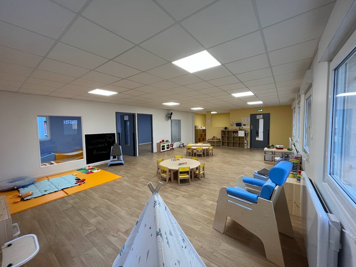 La micro-crèche Luméa Cormeilles-en-Vexin, offre une surface de 180 m², avec une salle de vie de 75 m² et une grande salle de sieste, le tout organisé autour de lumineuses baies vitrées donnant sur le jardin. L’espace est aménagé de façon à ce que les enfants puissent se sentir à l’aise et se dépenser tout au long de la journée.