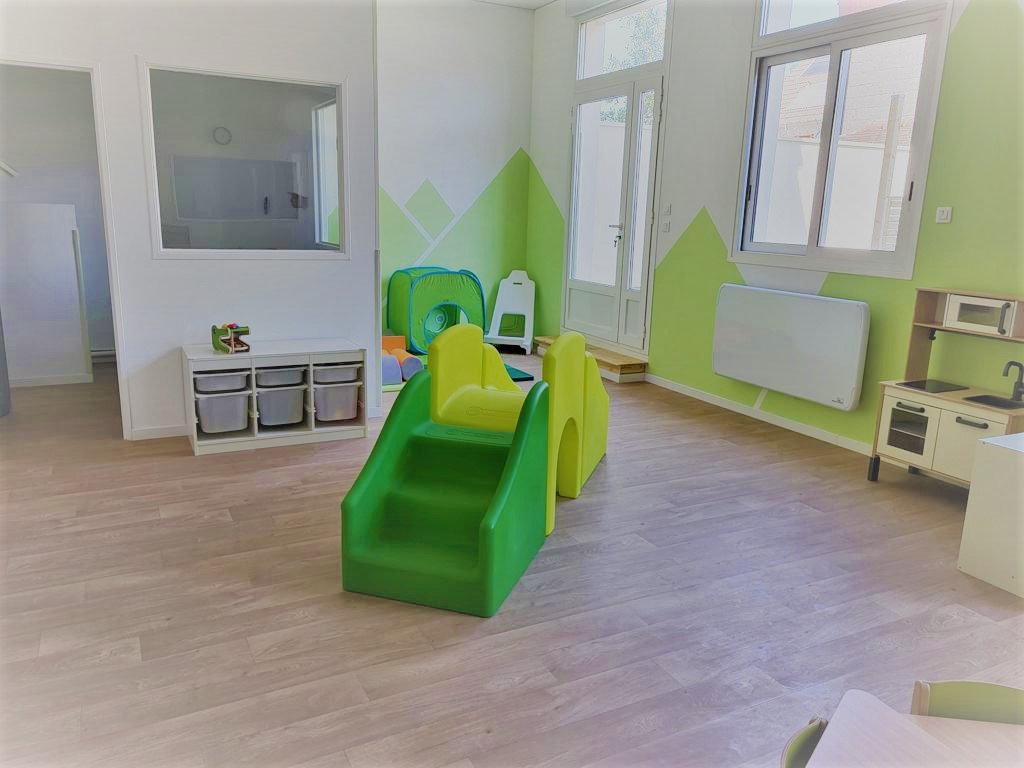 L’espace est aménagé de façon à ce que les tout-petits puissent se sentir à l’aise et se dépenser tout au long de la journée. Ainsi, des coins de jeux avec jeux de construction entre autres sont accessibles à l’enfant. Enfin, des espaces plus reposants comme des coins lecture sont proposés à l’enfant.