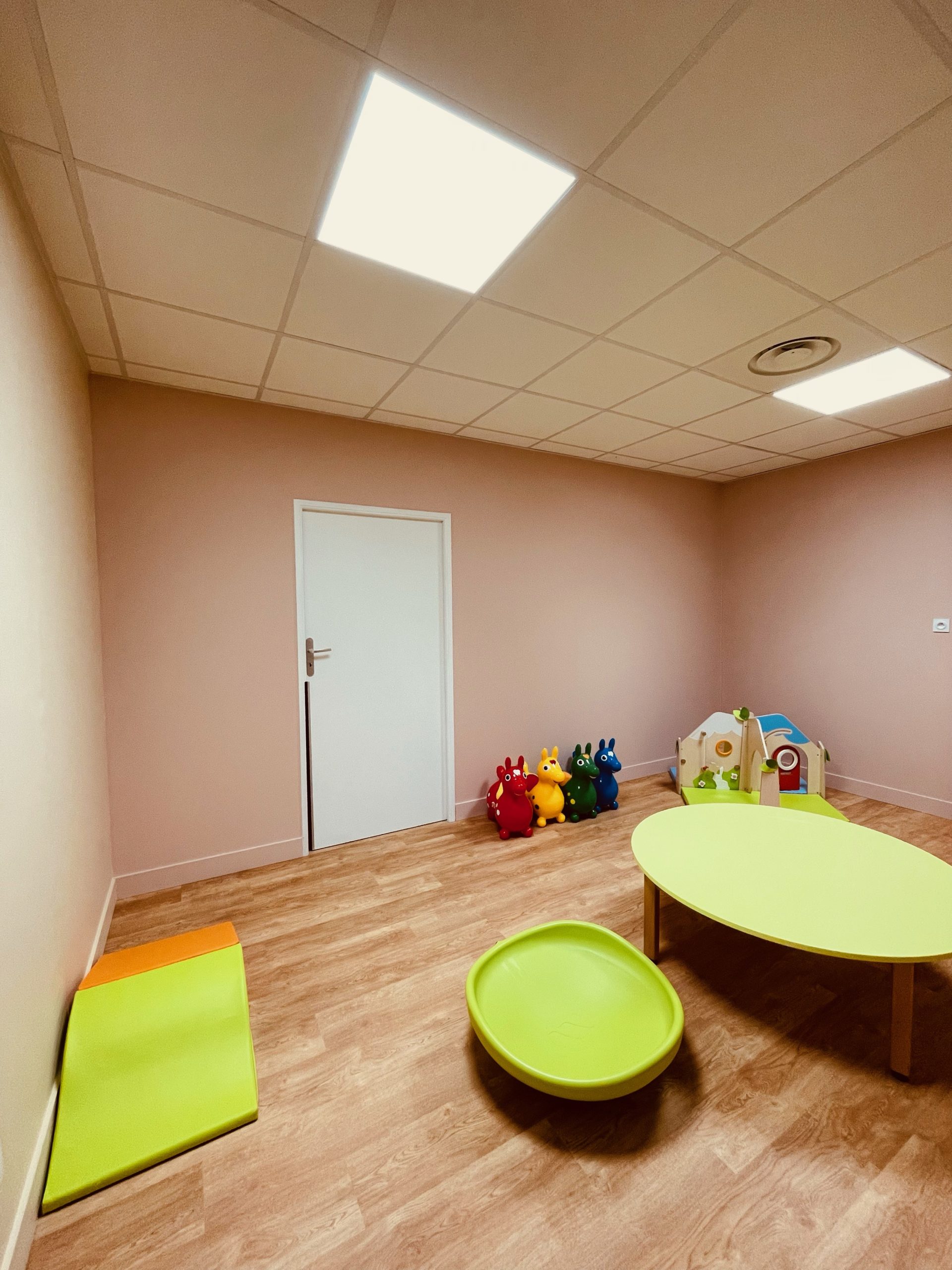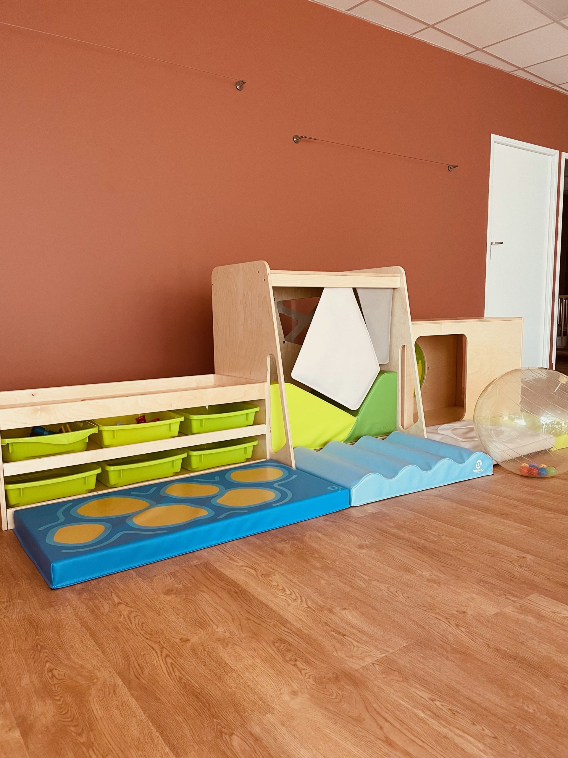 La micro-crèche possède un espace extérieur et une salle de motricité permettant aux enfants de développer leurs capacités motrices en toute sécurité.