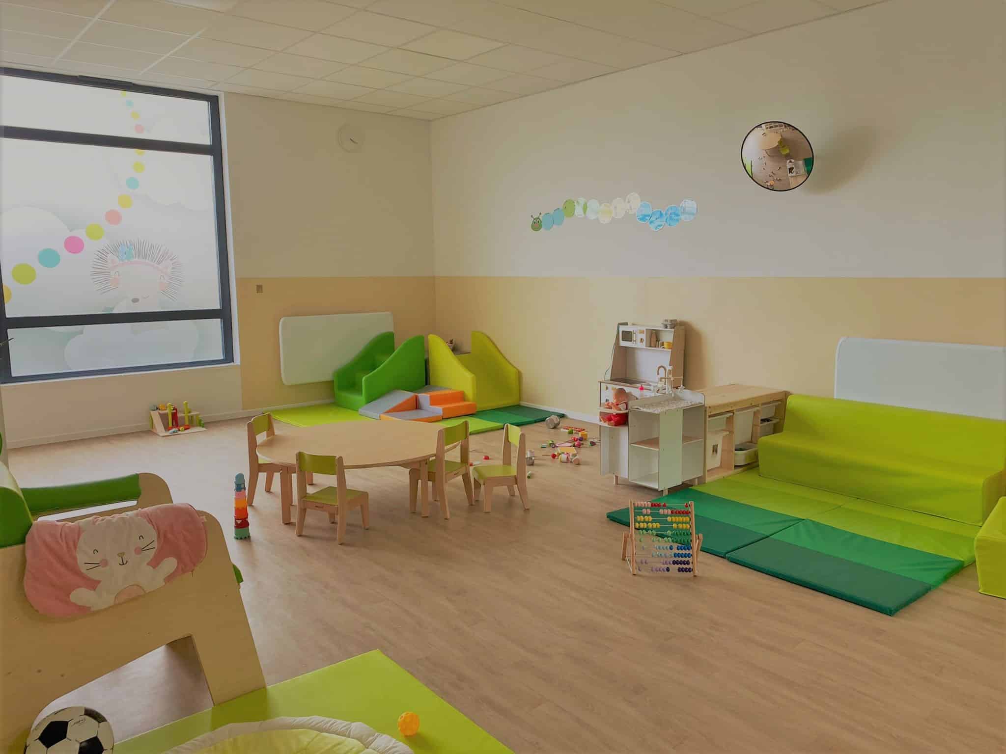 • Une salle de vie pour les enfants qui comprend des coins jeux d’imitation, livres, tapis d’éveil, espace sensoriel…